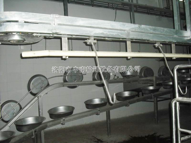 同步衛(wèi)檢線可分為:落地式和懸掛式。將屠體的頭、腸、胃、心、肝與胴體同步對好檢驗,紅臟與白臟懸掛在衛(wèi)檢線上,按設定的速度與胴體加工線同步運行,由人工對內(nèi)臟進行充分檢驗檢疫,,這樣既保證了肉質(zhì)的衛(wèi)生質(zhì)量,又符合國家有關衛(wèi)生檢測標準。該設備運行平穩(wěn),同步準確,是屠宰加工中不可缺少的裝置之一。